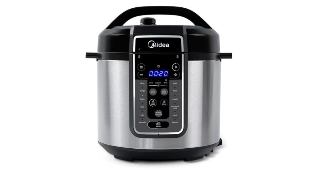 A Midea Master Steam conquistou o terceiro lugar por ser a melhor panela de pressão elétrica em aço inoxidável da nossa lista. Se você prioriza durabilidade e um visual mais profissional na sua cozinha, esta é sua panela.